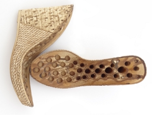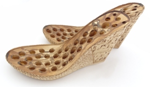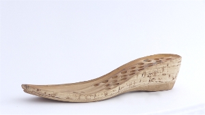 Typ podešve T03 - Korkový vzhled podešve na vysokém klínku. Tato podešev není propíchnutá. Je nutné si připravit šídlo a obuvnické lepidlo.