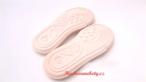 Pozor !!! Velikosti této podešve jsou větší. Pokud potřebujete vel. 23, je lepší objednat vel. 22. Pro správnou velikost zvolte velikostní tabulku. Podešve nejsou prodiravěné.